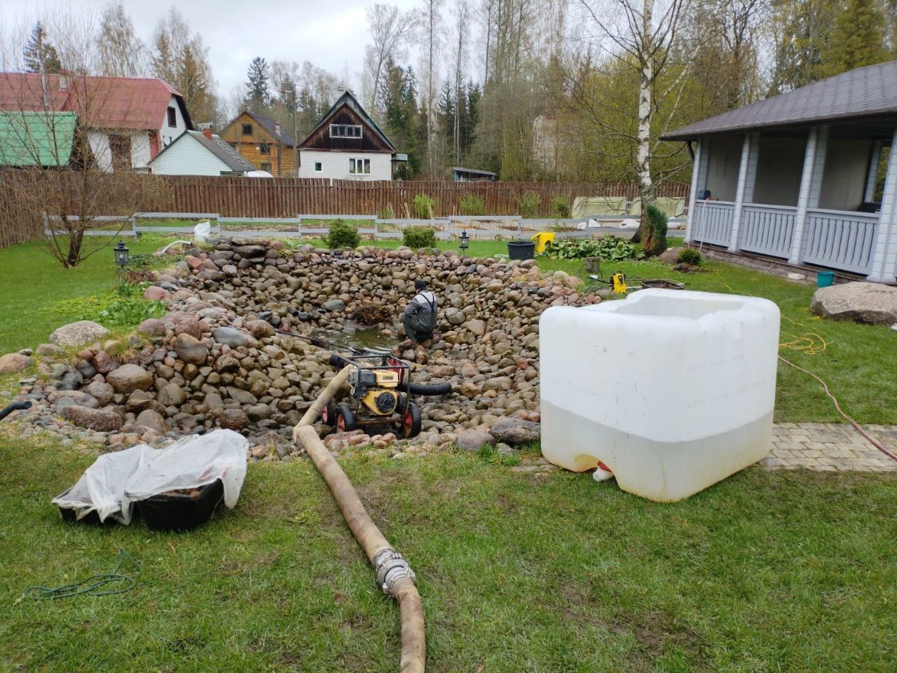 пруд снова становится чистым и эстетичным элементом участка.